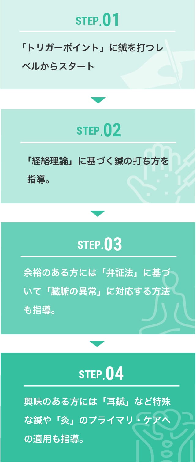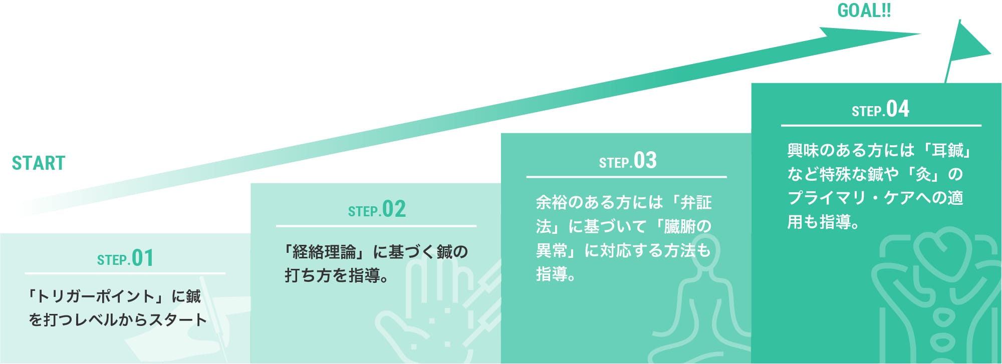 ・ディスポ鍼と円皮鍼を用いて「家庭医」として遭遇するcommon problemに対応できるようになる。